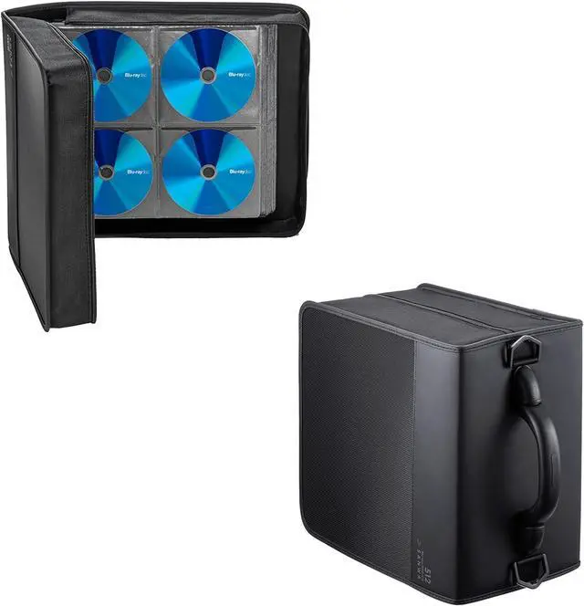 SANWA 240 + 512 Capacity CD Cases, Blu Ray Case Holder, Movie Music Media Disc Wallet, Hardshell DVD VCD Binder Storage Box, Portable Zipper with Handle, for Car, Home, Office, Black