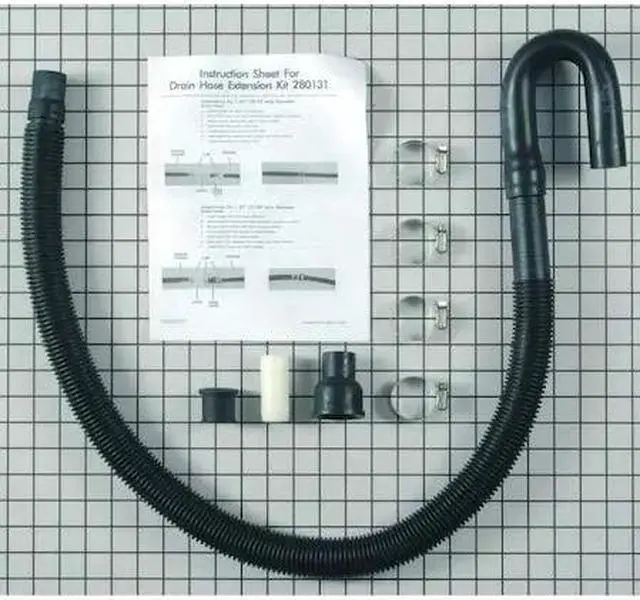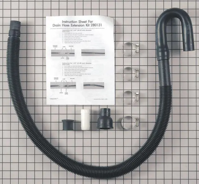 Washer Drain Hose Extension Kit, For Use With Mfr. Model Number 1CWTW5100VQ0, 1CWTW5100VQ1, 1CWTW5200VQ0, 1CWTW5200VQ1, 1CWTW5300SQ0, 1CWTW5300VW0, 1CWTW5300VW1, 1CWTW5500SQ0, 1CWTW5500ST0, 1CWTW5505SQ0, 1CWTW5505VQ0, 1CWTW5505VQ1, 1CWTW5520SQ0, 1CWTW5590SQ0, Fits Brand Admiral, Amana, Caloric, Crosley, Estate, Glenwood, Hardwick, Inglis, Jenn-Air, Kenmore, KitchenAid, Magic Chef, Maytag, Roper, Whirlpool