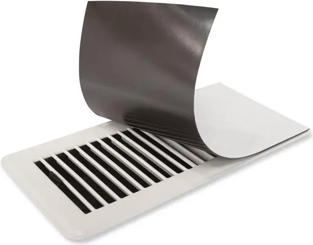 The Magnetic Vent Covers, 3 pk (5 in. x 12 in.) from Deflecto magnetically seals the air from passing through closed metal vents. It cuts easily with scissors to size, and can be painted or papered to match any decor.