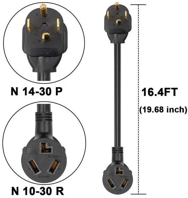 Dryer Adapter Cord For use when you need to connect your old type of 3-pole dryer with 10-30 plug plugin to new house 4-pole dryer 14-30 outlet of to get power.
