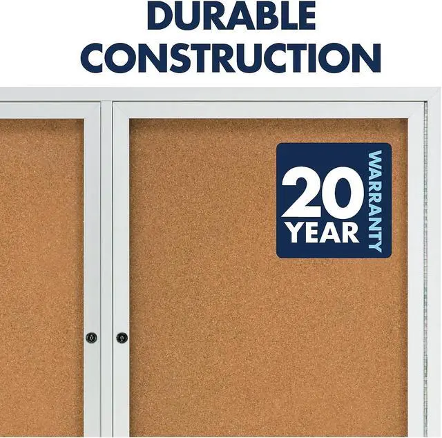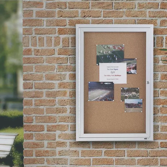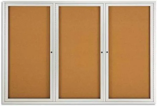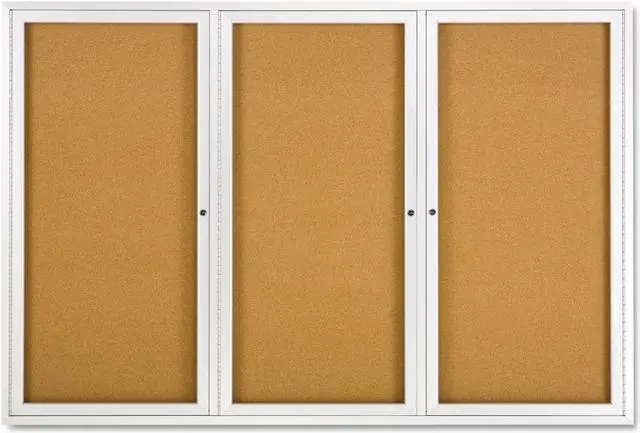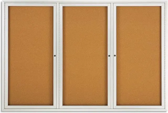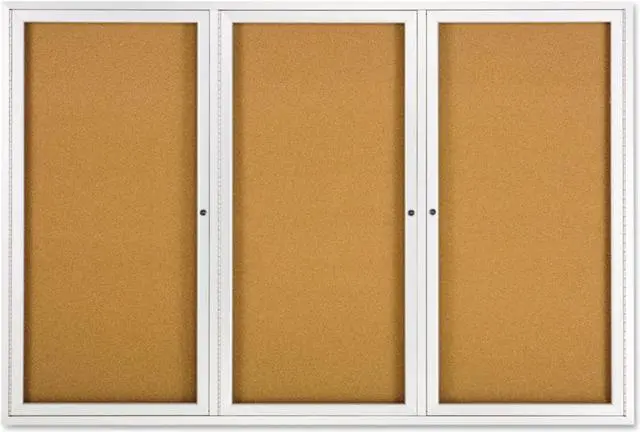 Tack papers directly onto the durable natural surface of this cork bulletin board, which has a high-density fiberboard backing for stability. The anodized aluminum frame provides added support and a professional look, while the shatter-resistant acrylic windows give passers-by a clear view at the posted contents. This Quartet enclosed bulletin board has three independently locking doors to limit access only to authorized individuals.