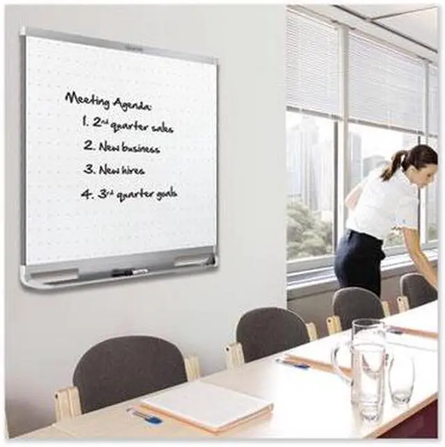 Prestige 2 Connects? Total Erase? magnetic whiteboard resists ghosting and staining. Either write or post documents to the durable surface. Dry-erase ink and marker dust erases cleanly from board surface easily. Quartet Prestige 2 Connects? accessories attach to the Prestige 2 Connects? board frame to keep them within easy reach. Marker tray, dry-erase marker and mounting hardware included. Board Type: Magnetic Dry Erase; Board Width: 72"; Board Height: 48"; Surface Material: Painted Steel.