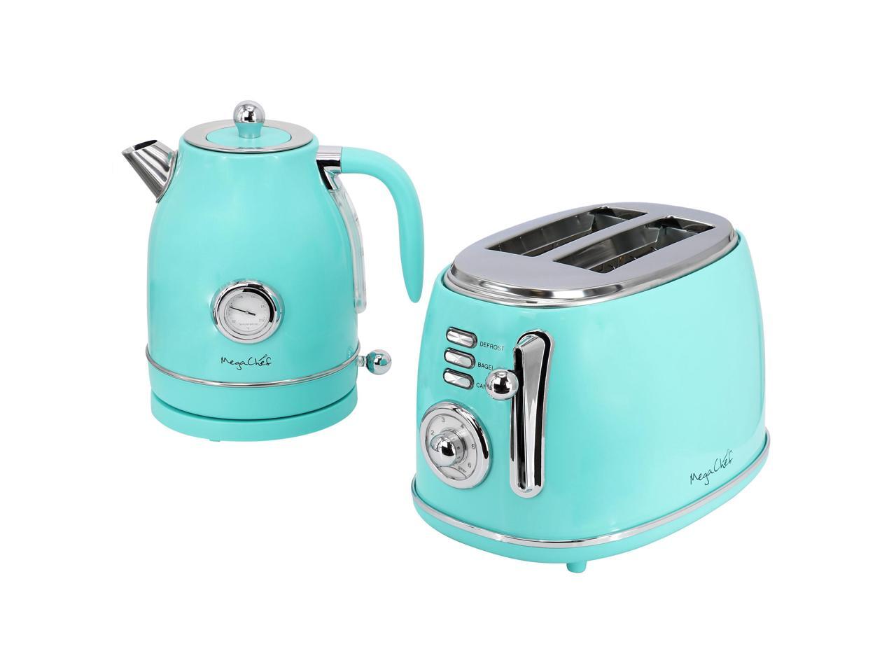 MegaChef 1.7 Liter Electric Tea Kettle and 2 Slice Toaster Combo in Turquoise