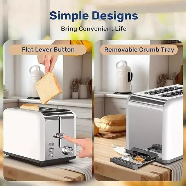 Easy to Use and Clean: This toaster has several function buttons, and you just have to choose the buttons according to your needs, while the removable crumb tray makes cleaning up an absolute breeze