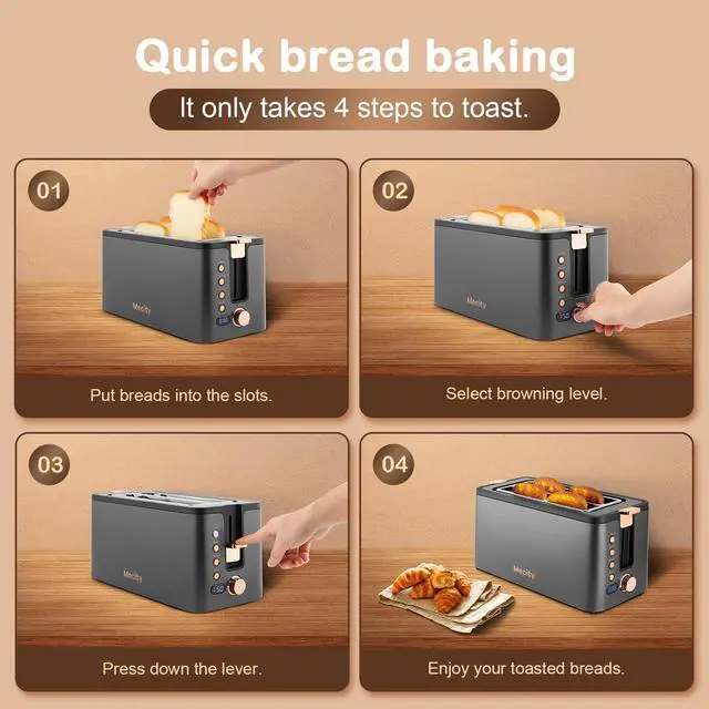 Slot dimension (LxWxH): 9.8“x1.5”x4.7", extra wide and deep slot for thick breads and bagels, and offers full-scale toasting.