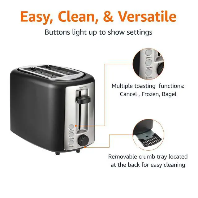 Removable crumb tray (located in the back) for easy cleaning