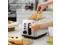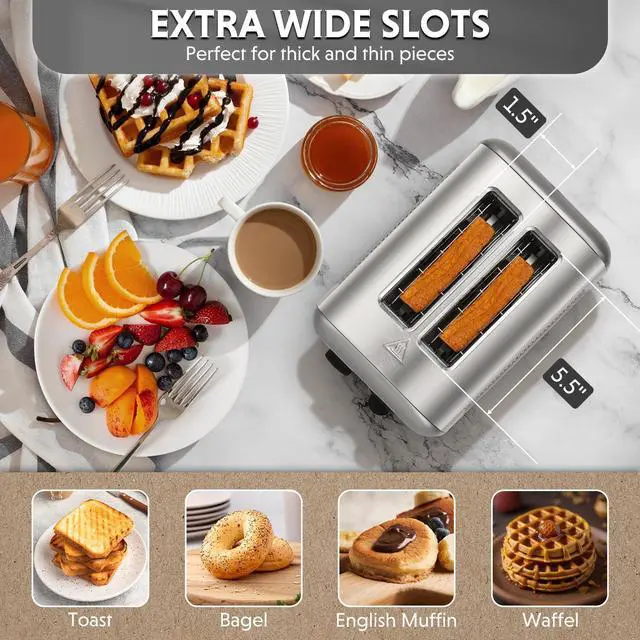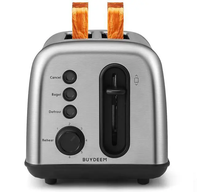 The lever of the toaster will pop up automatically when finished, extra-lift carriage control lever, safety in reach to remove bread slice.