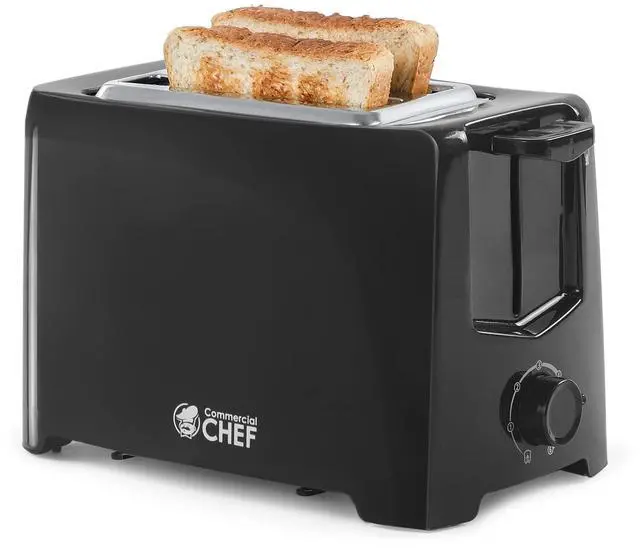 This Commercial Chef 2 slice toaster is your solution for premium, quality toasting. Enjoy a wide range of breads from sourdough to rye to multigrain with extra wide slots (0.94”) so you can savor thick slices. This bread toaster (9.87” x 5.78” x 6.44”) also comes with 6 settings, anti-jam protection and a toast cancel feature. Additionally, this toaster oven (1.96 lbs.) is equipped with cool-touch technology, built your safety with an extra lift feature that helps with removal of smaller breads and bagels. This bread machine is 700 Watts, 120/60HZ and comes with ISTA packaging to ensure customer safety and satisfaction.