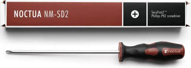 The NM-SD2 is a high-quality Phillips PH2 head screwdriver that is ideal for use with Noctuas cross recess based SecuFirm and SecuFirm2 mounting systems. Its 150mm long shaft makes it easy to reach the mounting screws of large CPU coolers and thanks to its magnetic tip, fixing screws in space-constrained environments such as tightly packed ITX builds is a breeze. Featuring a large, comfortable grip, the NM-SD2 is the tool of choice for power users who operate Phillips type SecuFirm and SecuFirm2 systems.