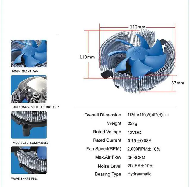 This CPU cooling fan adopts 90mm silent fan which is compatible