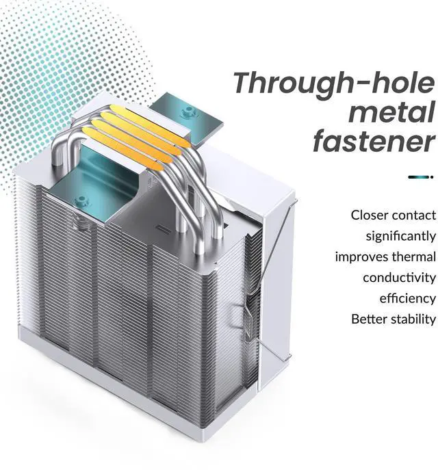 High-performance composite heat pipeCooling Performance: Advanced heatsink with 6 copper heat pipes (Inverse Gravity Heat Pipe Nickel-plated heat pipe with anti-oxidation )radiator delivering up to 225W D-TDP cooling capacity