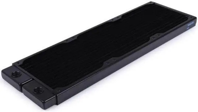 The next step in evolution: NexXxoS HPE Full Copper Radiator! The NexXxos Full Copper HPE Radiator uses the same materials as previous NexXxos models, but takes it a step further technically. Due to the condensed internal structure, the number of water channels and copper fins could be increased. Thus, a larger volume of water is in direct contact with the cooling fins and the heat transfer is enormously improved. The higher number of fin rows and their shortening also makes much more efficient use of the cooling surface. Comparison tests with the conventional NexXxos radiator have shown that a performance increase of 4.5K is possible when using the HPE radiator. At higher ambient temperatures and higher fan speeds, the performance gap with the normal NexXxoS radiators even increases progressively, reaching a possible performance increase of up to 6K. Space-saving & flexible to use The compact slim radiators can be mounted very flexibly in even the tightest cases thanks to their low overall height of only 20mm. Connection options & mounting The NexXxoS HPE radiator has one IN and OUT connection with G1/4" threads in the pre-chamber area. All screws for mounting in the case and for mounting the fans are included with the radiator.