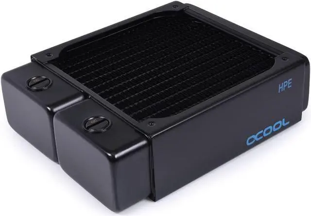 (* Test setup: NexXxos ST30 360mm radiator vs. NexXxos HPE-30 360mm radiator with Eisbaer cooler and 3x 120mm Rise Aurora fans and on Asus Prime x299 motherboard with Intel i9 10900x CPU with 350W waste heat) Connection options & mounting The NexXxoS HPE radiator has two IN or OUT connections with G1/4" threads in the pre-chamber area. On the opposite side is a fill or drain port, which can be used for filling and draining the water circuit. All screws for mounting in the case and for mounting the fans are included with the radiator. Additional sc