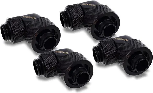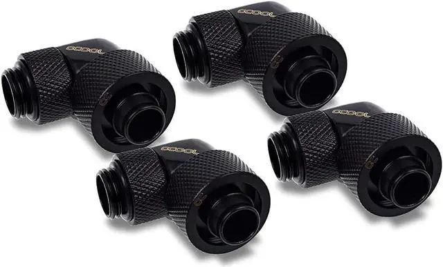 Execution: 90 screw-on socket 16/10mm This connection has a G1/4" thread on one side and is therefore compatible with 95% of all components. The other side is suitable for a 16/10mm hose. This connection is angled at 90 in the middle to avoid complicated hose routes The threaded end rotates for maximum flexibility. Technical specifications material Brass L x W x H 35.5 x22x 34.5 mm connections G1/4" M | 16/10mm (ID 3/8" OD 5/8") thread length 5mm Possible rotation 360 execution 90 angled colour black