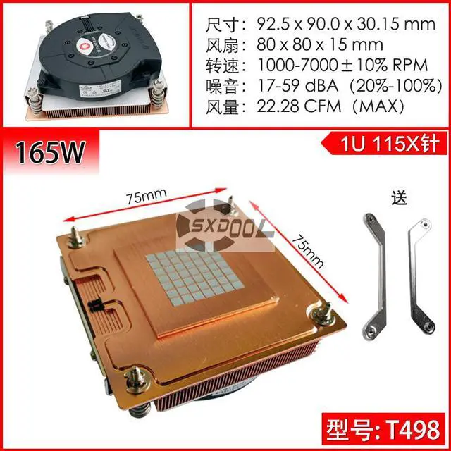 TOP MOTOR 1U intel 1200 115X CPU ITX violent fan ultra-thin VC uniform temperature plate server radiator 7000RPM For T498 160W