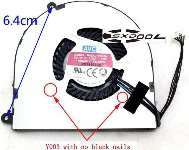 Fan Model: BAZA0707R5H DC5V 0.5A 5-wire 5-pin Please Be sure to confirm the type of Y002 or Y003 required. Please purchase according to the device model, fan shape, screw hole position, lead and plug. Welcome to consult.