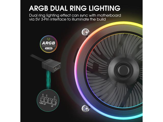 ARGB DUAL RING LIGHTING: Dual ring lighting effect can sync with motherboard via 5V 3-Pin interface to illuminate the build.