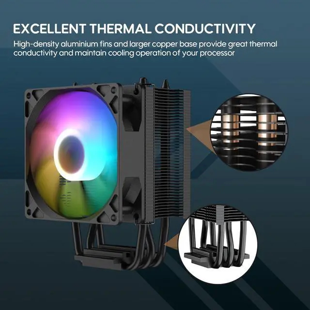 The Vetroo V3 CPU Air Cooler boasts direct access heat pipes and high-density aluminum fins to ensure optimal heat dissipation. This results in stable and reliable cooling performance, even under heavy loads.