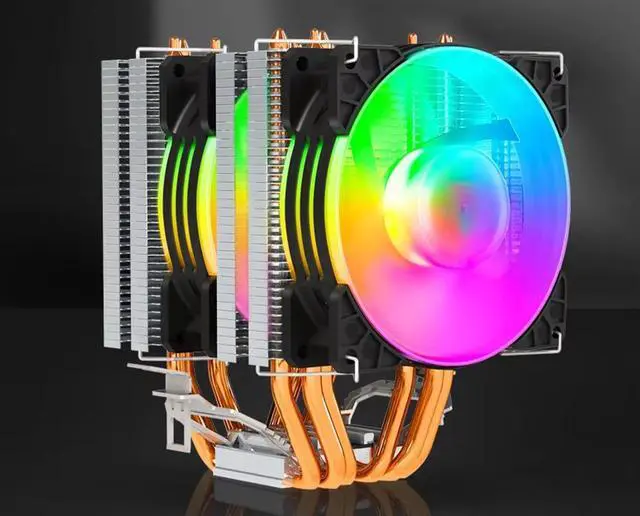 It is a CPU cooler with intelligent temperature control. which supports CPUs on Intel platforms and AMD platforms. It consists of six copper tubes with good thermal conductivity, high-density aluminum sheets and two light-emitting fans. It is suitable for CPUs with a power of 130W or less. It not only has excellent heat dissipation performance, but also emits colored light, which is very cool.
