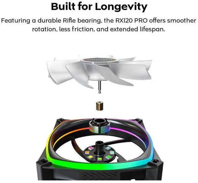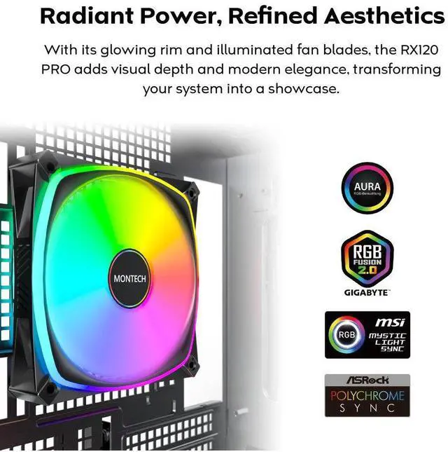 The RX120 PRO builds on the legacy of the original RX series, long established as the cooling backbone of MONTECH's flagship cases and standalone builds alike. This upgraded PRO version refines that proven DNA with enhanced airflow, quieter operation, and radiant design, turning reliable cooling into a showcase of power and elegance.