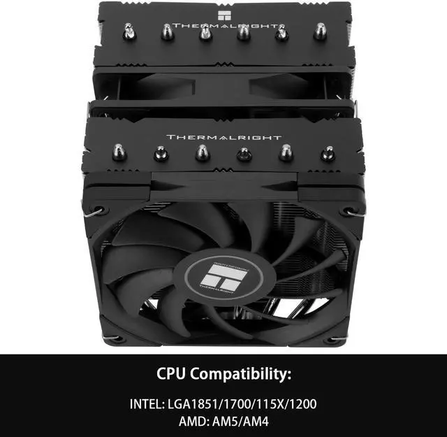 Intel platform slots: AM4/AM5; Intel LGA1851/1700/1150/1151/1155/1156/1200, the cooler comes with corresponding mounting grommets for easy installation, which can be installed according to the instruction manual or the installation video (Note: For AMD installation, you need to use the original motherboard backplane for installation)