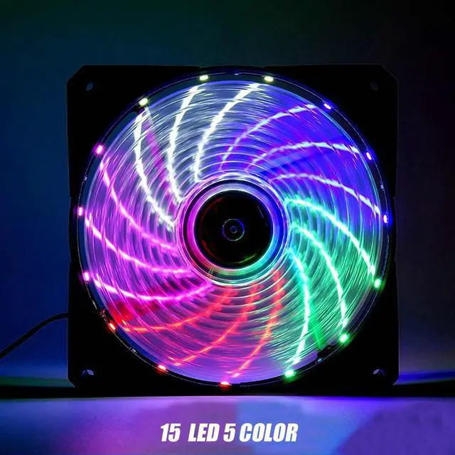 Features:- ABS material, efficient heat dissipation.- RGB cool light effect, high brightness, uniform color, soft and not glare.- Mute.- Big air volume.Specifications:Product: CPU CoolerWorking voltage: 12VRated current: 0.27AInterface: 3pin + Large 4DSpeed: 1200RPMLife: 40,000 hoursSize: 120x120x25mmStyle:# 1: 15 LED 5 Color (unchanged)# 2: Rubikes Cube Inside And Outside 7 Color (unchanged)# 3: Dual-Aperture Magics Color (Automatic Color change)Packing list:1 * CPU CoolerNote:1. Please allow 0.5-1cm differences due to manual measurement.2. Due to the light and screen difference, the item's color may be slightly different from the pictures.