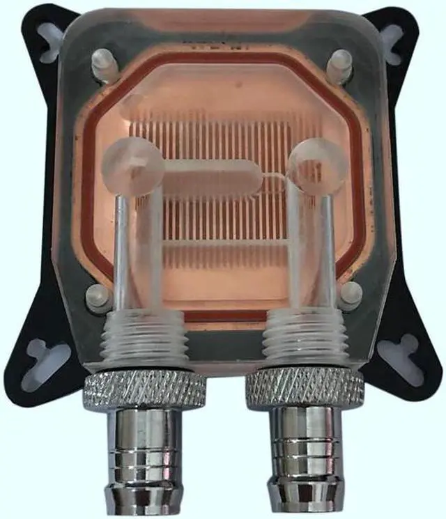 2 holes on the side of the cover, the water flows from the side.0.4 mm copper columns on the copper base.The water contact area becomes large, so the block can carry more heat from quickly.The base is made of T2 (purity of 99.9%) CNC cut copper. The surface flatness is less than 0.01 mm. The base can fit the better, so that it can absorb more heat.The copper base is processed with anti-oxidization technology.Colour: BlackMaterial: copper + transparent acrylicCopper base dimension(mm): 50*50*3Fitting thread: G1/4 inchSupported tube: 9.5 mm(ID)*12.7 mm(OD) PU tube, or 10 mm(ID)*16 mm(OD) solid tube, or 8 mm(ID)*12 mm(OD) silicon tube card: 6800GT, 6600GT, 7800GT, 7800GTX, 7900GT, 7950GT, 7900GTO, 7900GTX, 8600GTS, 9600GT, 9500GT, 8800GT(G92), 8800GTS(G92), 9800GT, 9800GTX, 9800GTX+, GTS250, GTS450, GTX550, GTX260, GTX260+, GTX275, GTX285, GTX570, GTX580, GTX660, GTX660TI, GTX670, GTX680, GTX560, GTX460, GTX460TI, GTX560TI.AMD card: X1900PRO, X1900XT, X1900XTX, X1950PRO, X1950GT, X1950XT, X1950XTX, 2600XT, 2900XT HD3850, HD3870, HD4750 HD4770, HD4850, HD4870, HD4890, HD5830, HD5850, HD5870, HD6970, HD6950, HD6870, HD6850, HD6790.Package included:1 x Water cooling block2 x Compression fittings4 x Mounting screwsOnly the above package content, other products are not included.Note: Light shooting and different displays may cause the color of the item in the picture a little different from the real thing. The measurement allowed error is +/- 1-3cm.