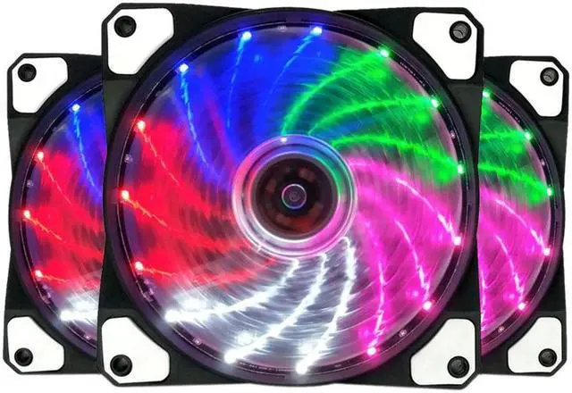 3PCS Computer 16DB Ultra Silent 15 LEDs Case Fan Heatsink Cooler Cooling, 12CM Fan,12VDC 3P IDE 4Pin Multicolored