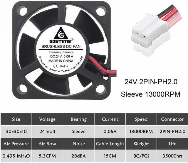 DC 24V 30mm 30x30x10mm 3010 Mini Brushless Cooler Cooling Fan