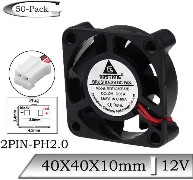 DC 12V 40x40x10mm 40mm 4cm Mini 2PIN Cooler Cooling Fan