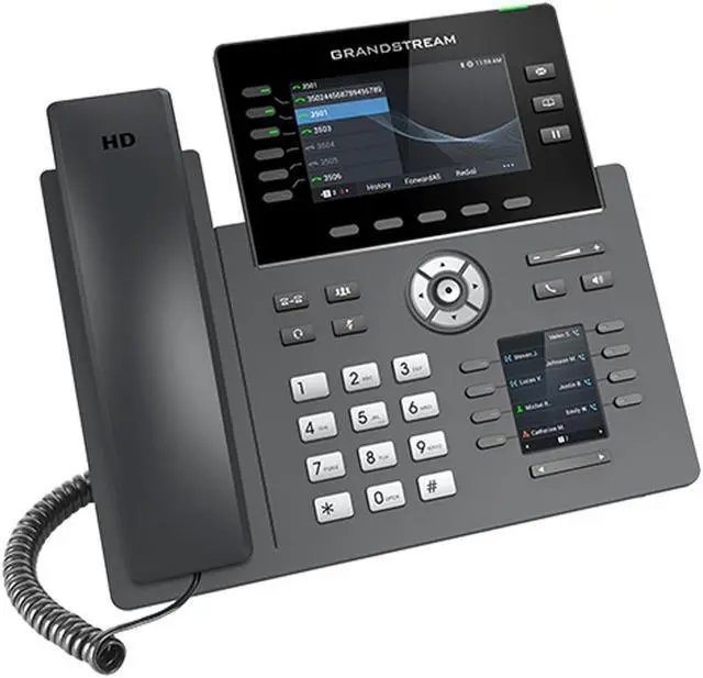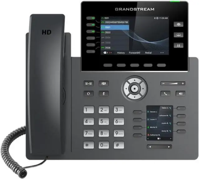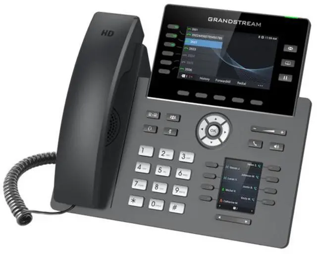 The GRP2616 is a high-end carrier-grade IP phone designed with zero-touch provisioning for mass deployment and easy management. It supports 6 lines and 6 SIP accounts while featuring a sleek design and a suite of next-generation features including integrated Wi-Fi, Bluetooth support, 48 virtual multi-purpose keys (MPKs), dual Gigabit ports and more. This device features a 4.3 inch color LCD screen with swappable face plates to allow for easy logo customization and an additional 2.4 inch display screen. The GRP series includes carrier-grade security features to provide enterprise-level security, including secure boot, dual firmware images and encrypted data storage.