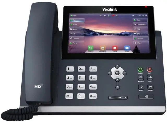 The Yealink T48U combines an attractive new ergonomic design with wideband audio (HD Voice) for crystal clear voice communications, Gigabit connectivity, 7-inch color touchscreen LCD display, Dual USB Ports, and supports up to 16 SIP accounts