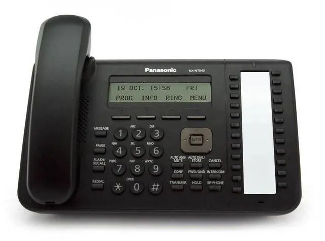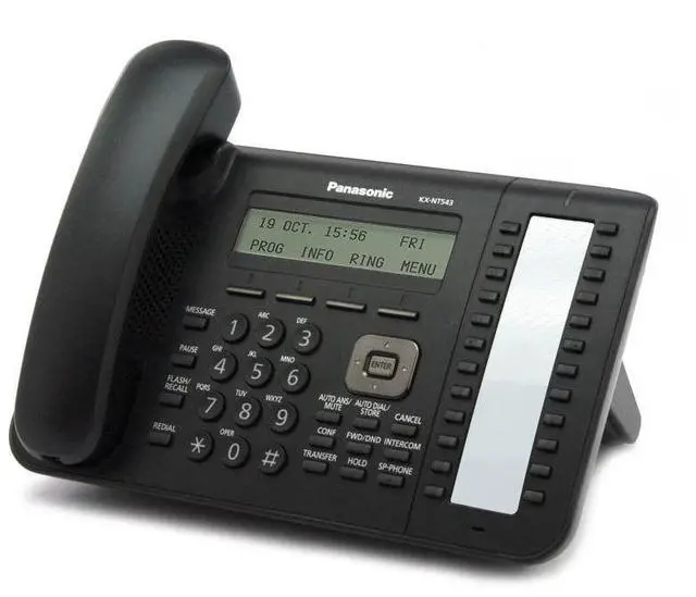 The Panasonic KX-NT543 is a standard IP telephone with 24 buttons, backlit lcd display and speakerphone for any office decor. A built in electronic hook switch port allows the IP terminals to have access to the DECT enabled headsets. It offers a range of portability and comfort as frequent users are able to move around freely, without being tied down by handsets. The large, clear 242x55 Graphical LCD display with intuitive User Interface offer fast access to phonebooks and features. It offers best in class audio quality, meaning fewer repeated conversations and misheard calls. This phone features wideband compliant, hearing aid compatible handsets and built-in, high quality speaker and microphone.