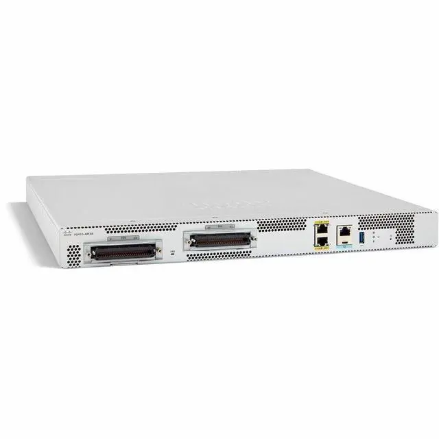 Equipped with two RJ-21 (Amphenol) 50-pin connectors, the VG410-48FXS simplifies bulk wiring. This allows for clean, organized cable management when connecting to existing punch-down blocks or structured cabling systems in a server room.
