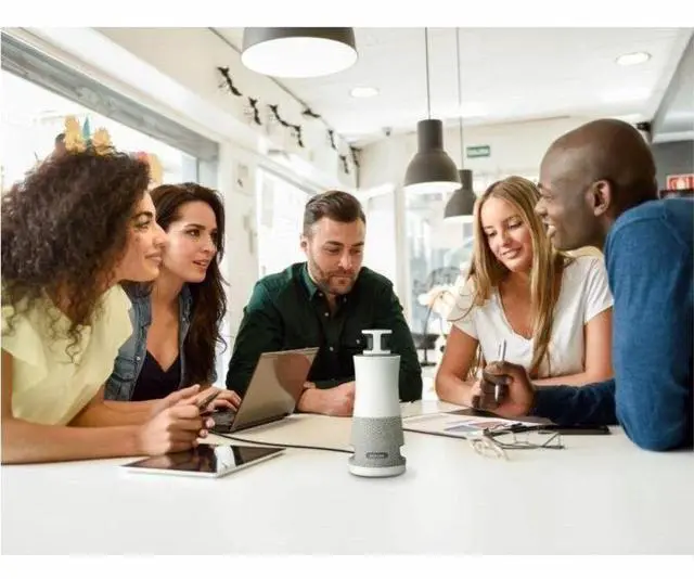 Multiple integrated speakers make remote attendees sound as if they're in the room. Screen Layout Switching Choose from various screen layouts, all featuring a 360° panoramic view of your meeting space. Switching layouts is effortless with Meeting 360 - simply tap the button on top of the device to change views. User Friendly Design Featuring a sleek design that's both stylish and practical, Meeting 360 is easy to deploy with simple USB Type-C connectivity. Convenient volume adjustment and mute controls are accessible from both sides of the device, allowing for easy management from anywhere around the table.