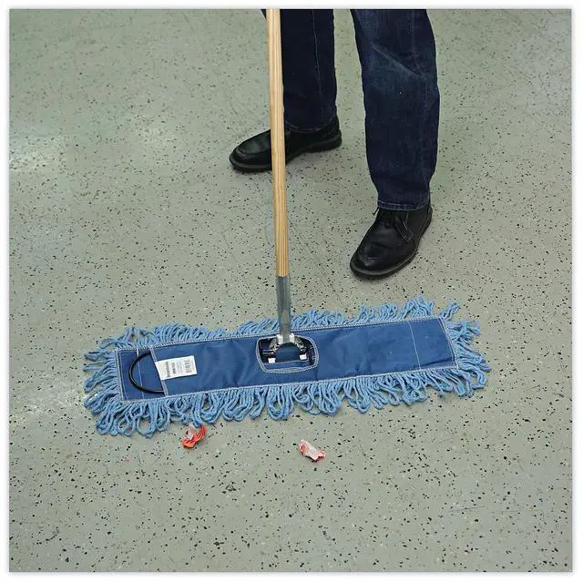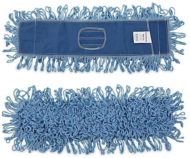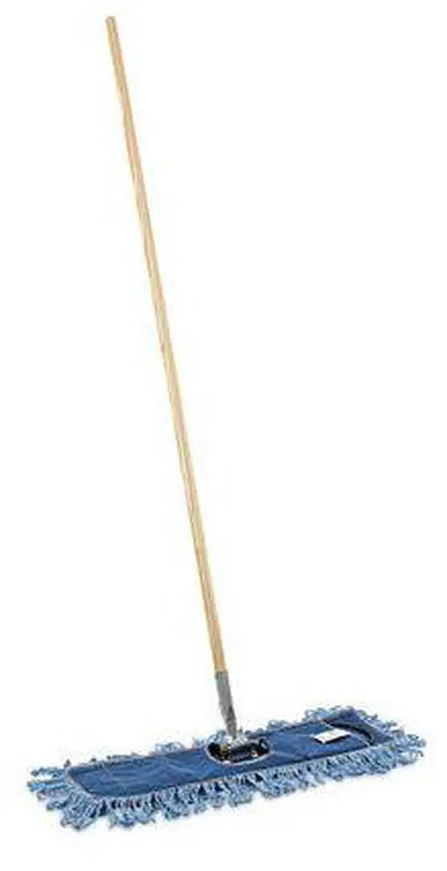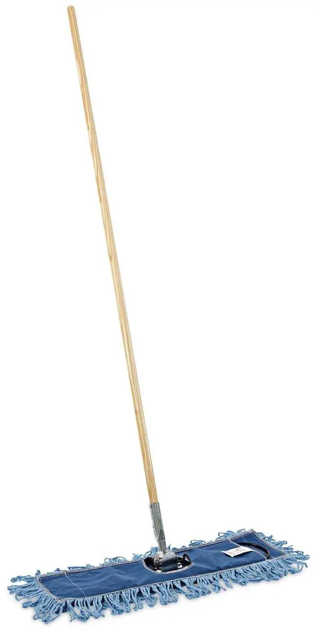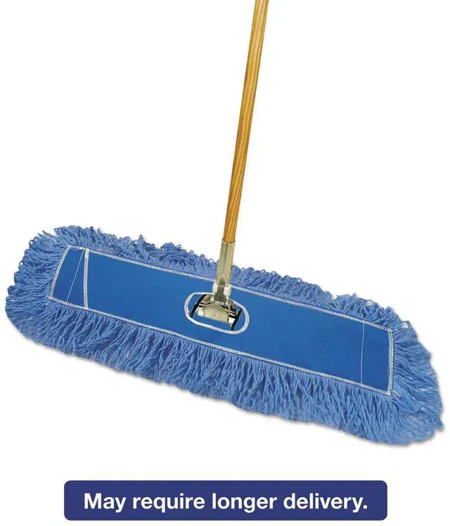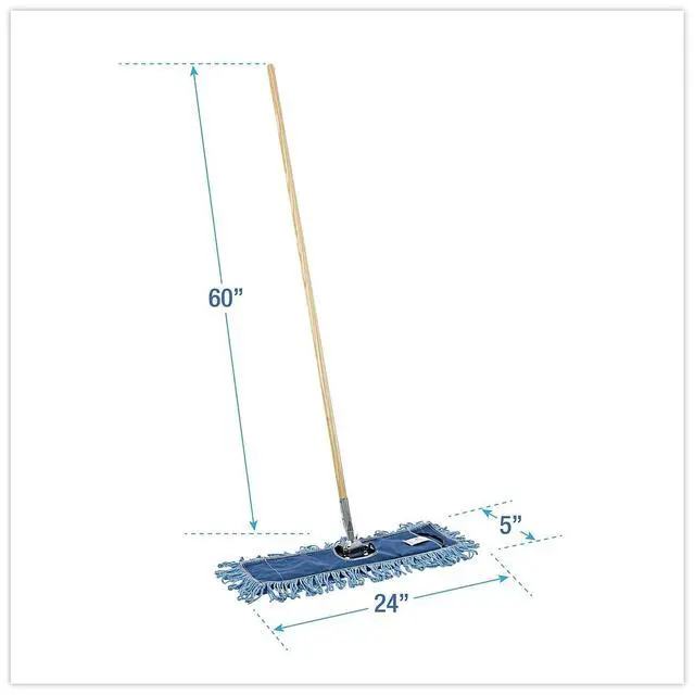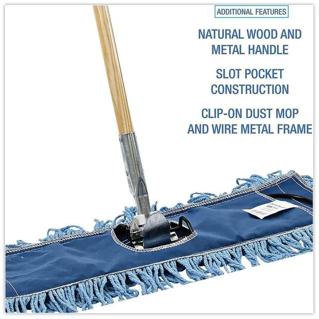 Hospital grade dust mop kit is an ideal choice for healthcare use. Looped ends reduce linting and provide longer product life. Standard slot-pocket construction for ease of use. Easy-to-assemble kit for speedy cleaning. Application: Floors; Mop Head Size: 24 x 5; Handle Length: 60"; Mop Head Color: Blue.