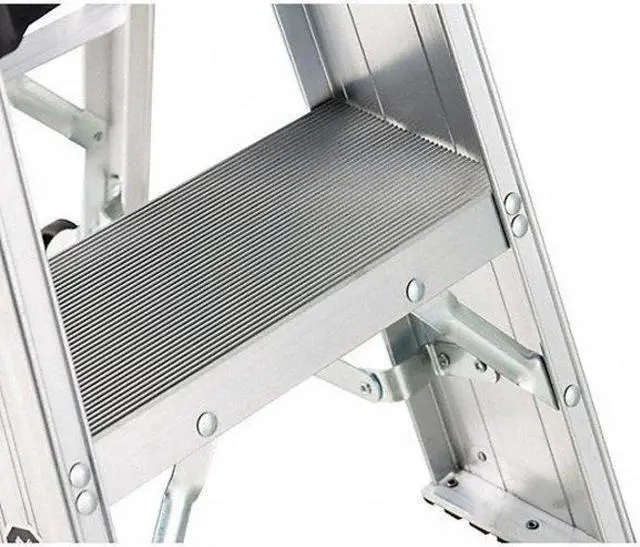 This 2-foot Aluminum Industrial Step Stand is ideal for industrial applications, especially in environments with grating floors. Designed with a large molded top, it offers a robust 375-pound capacity, providing a sturdy platform you can confidently stand on. Built for durability, this step stand includes heavy gusset bracing and heavy-duty steel gussets to support the bottom frame. The large steps offer twice the area of a standard step, and feature heavy-duty side connections for added stability. This industrial step stand is engineered to meet the rigorous demands of industrial settings, combining strength, stability, and ease of use. Meets or exceeds all safety standards set by ANSI and OSHA, ensuring you can rely on its performance in any situation.