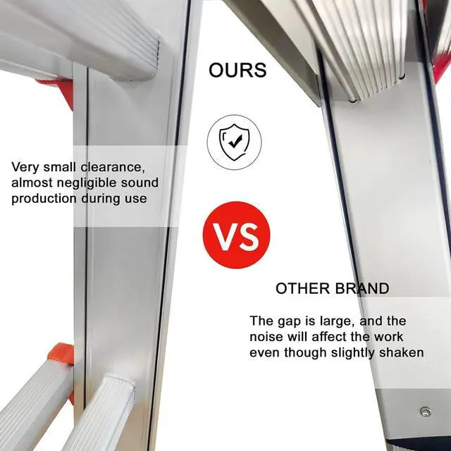 STRONGER: using high-quality sturdy aluminum alloy, aluminum tube thickness reinforced, robot welding craft, high precision and consistence, the wider and longer undulating lines on the rungs, reduce fatigue and foot pain, and avoid slippage of the sole during use as much as possible, when completely unfolding this lightweight ladder, the careful design of the u-shaped lock and auto limit spring lock offer double safe reinforcements, reduce our stress when climbing higher and working aerial work