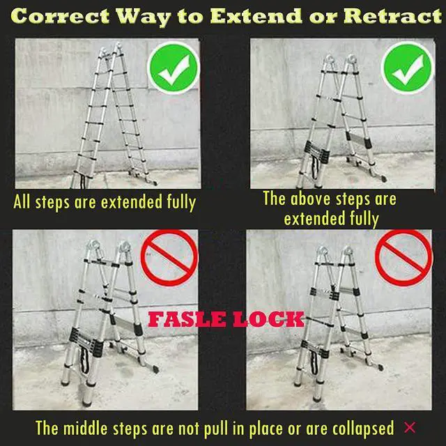 Independent Locking: The telescoping ladder features with separate mechanical locks, and each rung would be locked automatically when you fully extend it. It allows user to adjust the height of the ladder to specific requirements such as repairing ceiling lights, hanging picture frames, and painting walls;