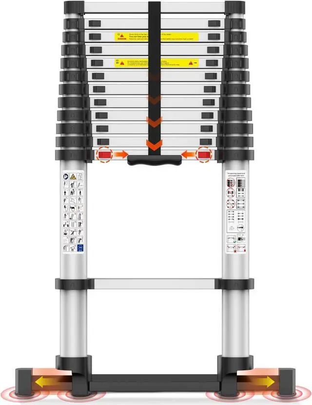 Dual Retraction Options for Adjustable Height: Our telescopic ladder offers versatility in height adjustment with two convenient retraction methods. Users can choose to collapse it section by section for precise height adjustments or utilize the one-touch retraction feature for quick and effortless folding.