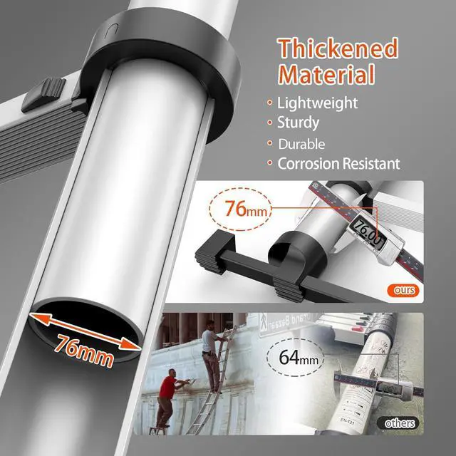Enhanced Strength and Stability: Addressing the demand for a sturdier ladder, our extendable ladder features a robust 76mm diameter and reinforced plastic components, providing a reliable and stable solution for various applications