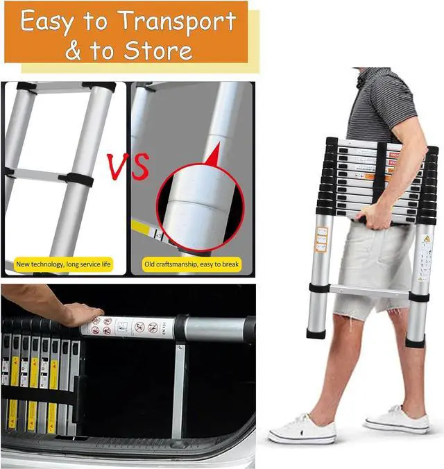 Multi-purpose Use: The telescoping ladder is perfect for indoor housework and outdoor activities, window cleaning, changing light bulb, garden work, access loft and much more. This ladder should be part of your tool kit.