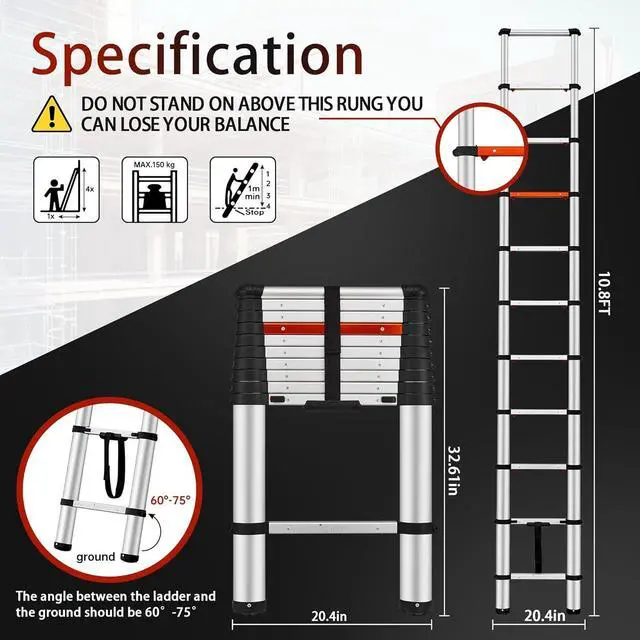 : To improve security, we have made significant upgrades to the step interface regarding its material and structure, which will be durable for years to come. You will no longer have to deal with constant replacements, saving you money! With the non-slip top cover, the bottom non-slip feet cover and textured steps, the telescoping ladder is almost not shaking when climbing and standing on it. Also, it can protect walls and floors from scratches.