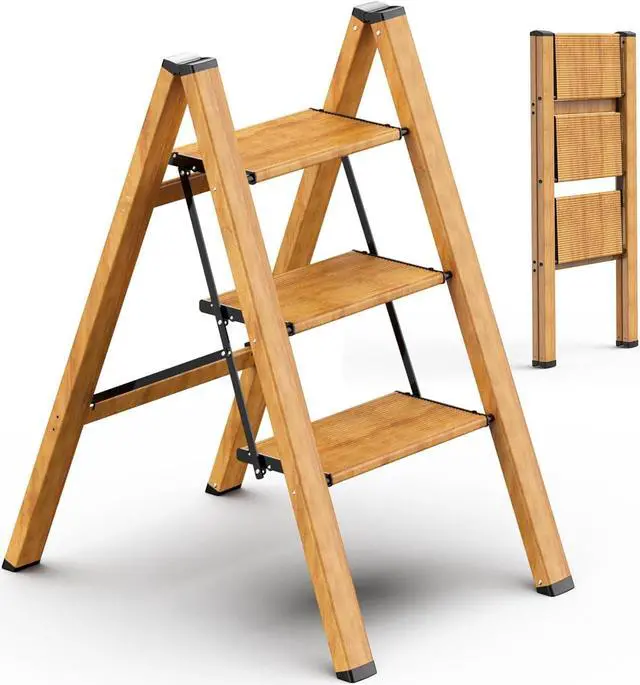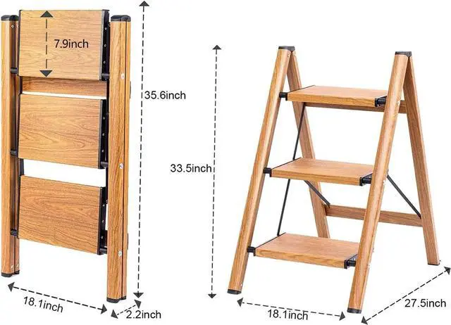Woodgrain Color - With the stylish design, the ladder would fit in the house like a furniture. It can also be used as a ladder shelf to place things on the pedal, like flowers, books, bags, etc.