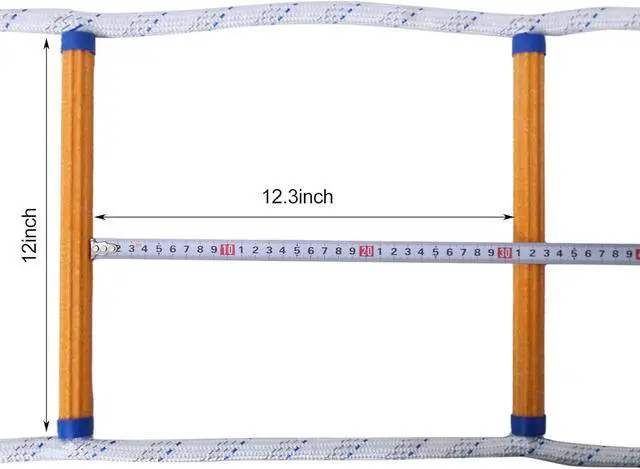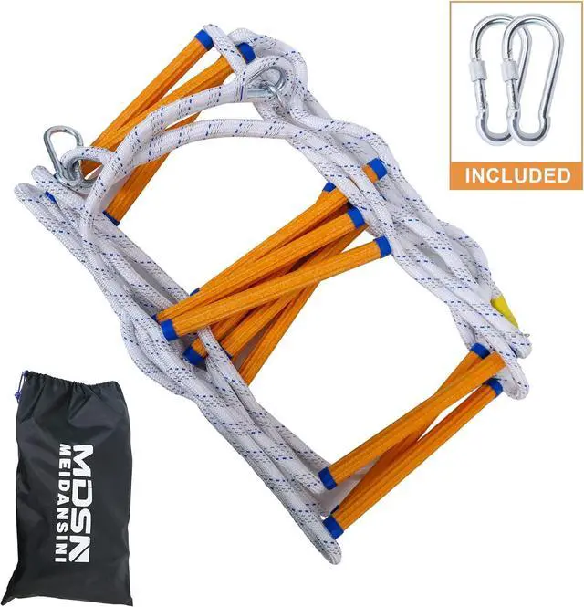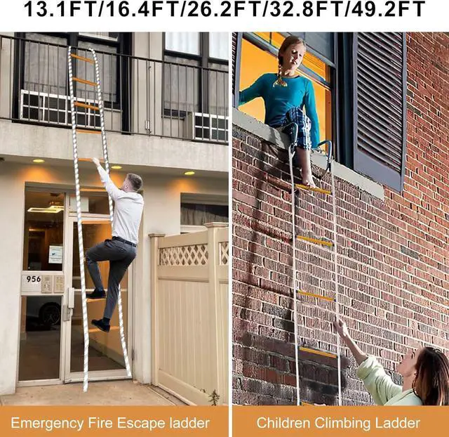 Easy to use & fast to deployThis emergency fire evacuation ladder is designed with convenience and accessibility in mind. It deploys in seconds and doesnt require any tools to set it up or assemble it. rope ladder has 49 feet long and designed specifically for two story building rescues as well as being resistant to make sure you can count on it in case of an emergency