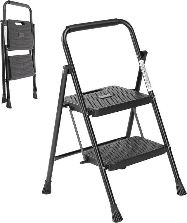 • Heavy Duty Non-slip 2Step Ladder Folding Steel Step Stool 800Pounds Max Capacit