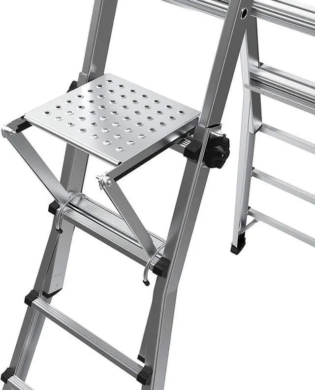 Stand securely and comfortably on the work platform' s broad surface (rated to hold 375 lbs. ) at any safe height on the ladder