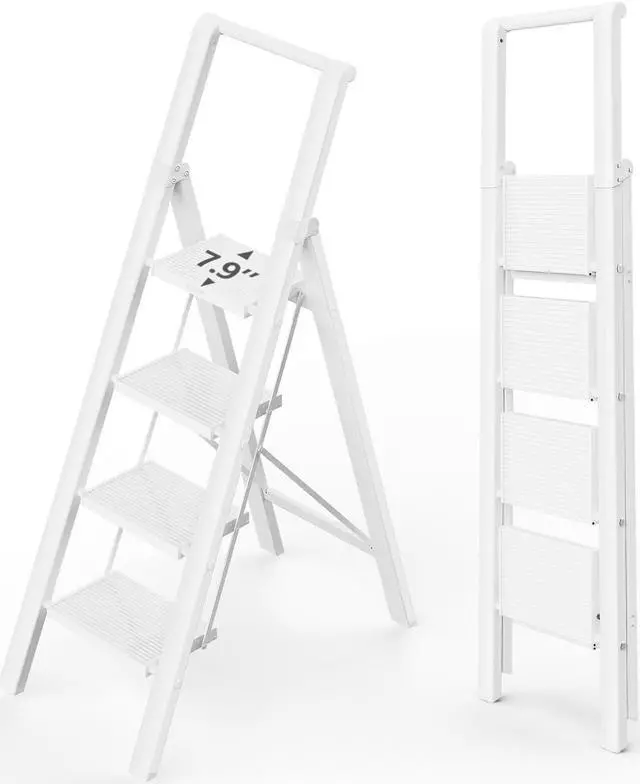 Fold Flat and Thin: When the ladder is not used, it can be folded thin to put in a narrow space, such as the gap between the cabinet and the wall, or you can hide it behind the door