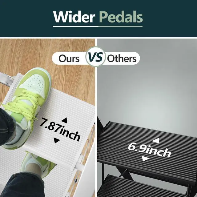 Thicker Rungs: This ladder comes with a set of rungs that are 7.87 " deep; The aluminum material of the pedals is thickened to 1.4 mm; Ensure comfort and stability when stepping on it