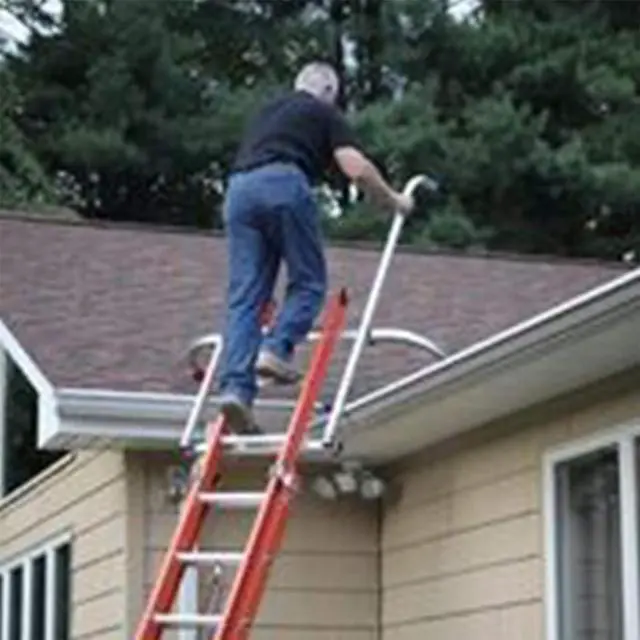 WALK THROUGH DESIGN - Ladder Safety Rails stabilizes your ladder on uneven surfaces. Once installed, the extendable hand rails offer stability and walk-through to step on and off the ladder safely.